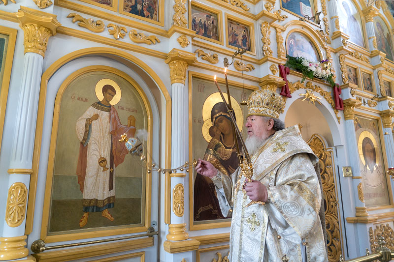 После отпуста Литургии перед иконой Богоявления было совершено славление. При выходе из храма митрополит Сергий преподал всем архипастырское благословение.