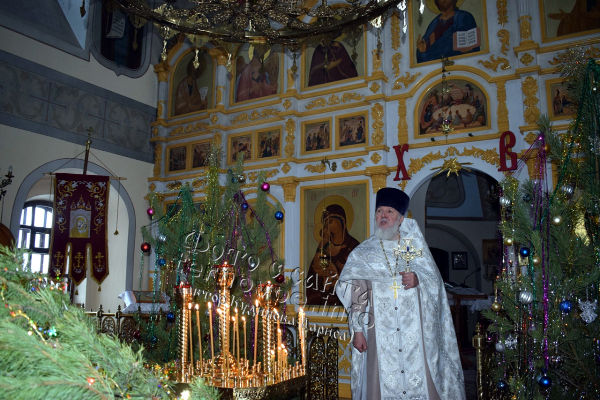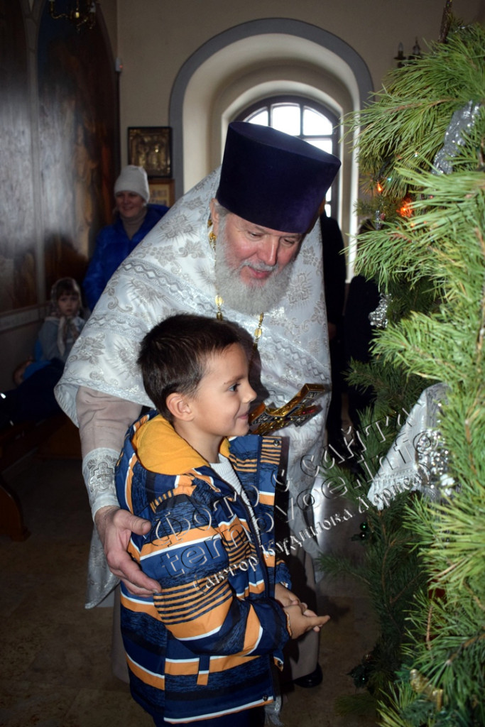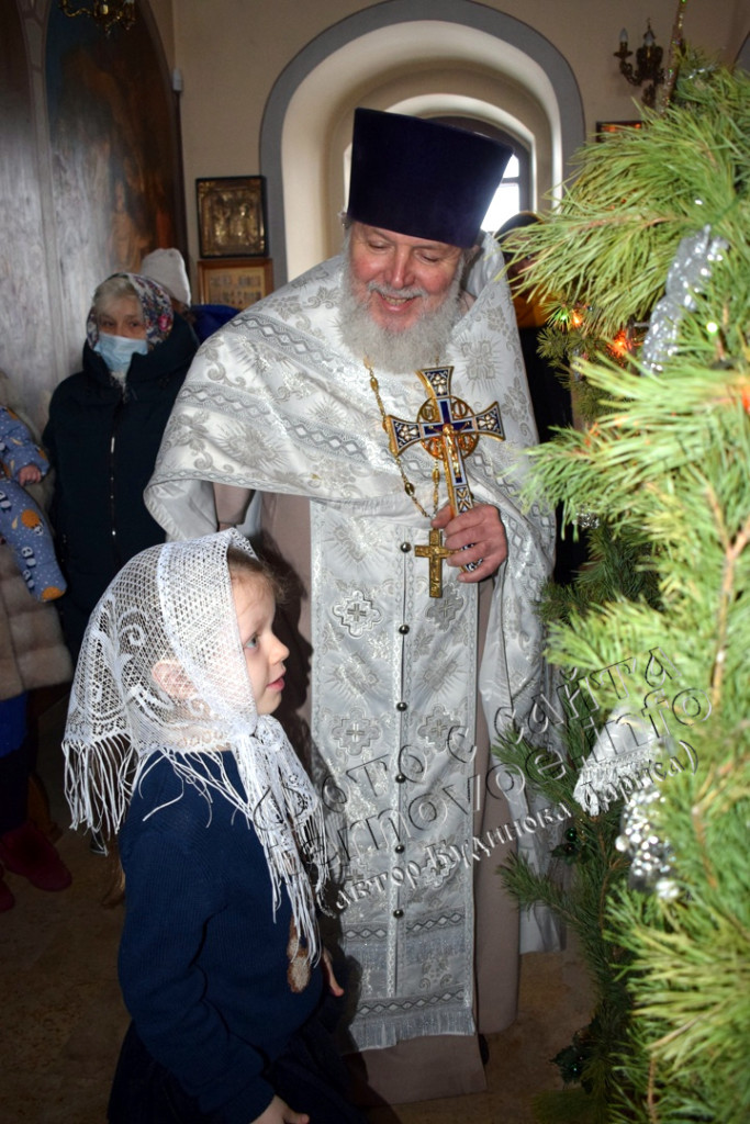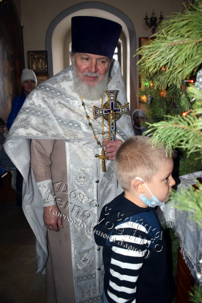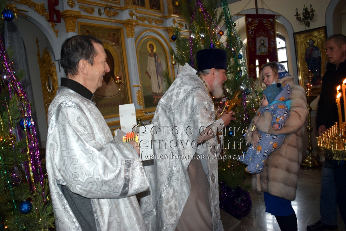 Настоятель храма отец Сергий поздравил всех с Рождеством Господа и Спаса нашего Иисуса Христа и вручил сладкие подарки.