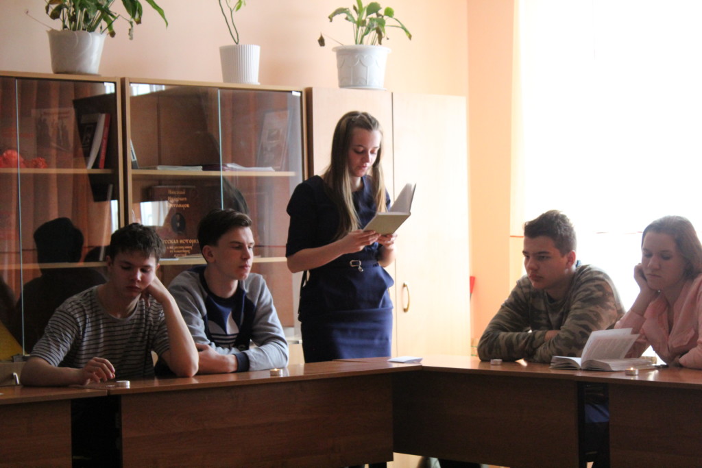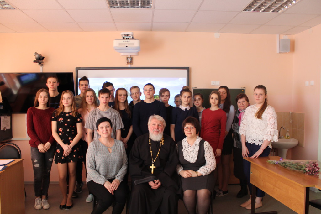 В рамках мероприятий, посвященных Дню православной книги, в Губаревской средней школе 21 марта, в День поэзии, ученики 9-11 классов, учитель русского языка и литературы Ильяшенко А.В., учитель истории Кудинова Л.А., библиотекари сельской библиотеки Провоторова Л.В., Дмитриева З.В. и настоятель Свято-Богоявленского храма отец Сергий говорили о духовности и поэзии.