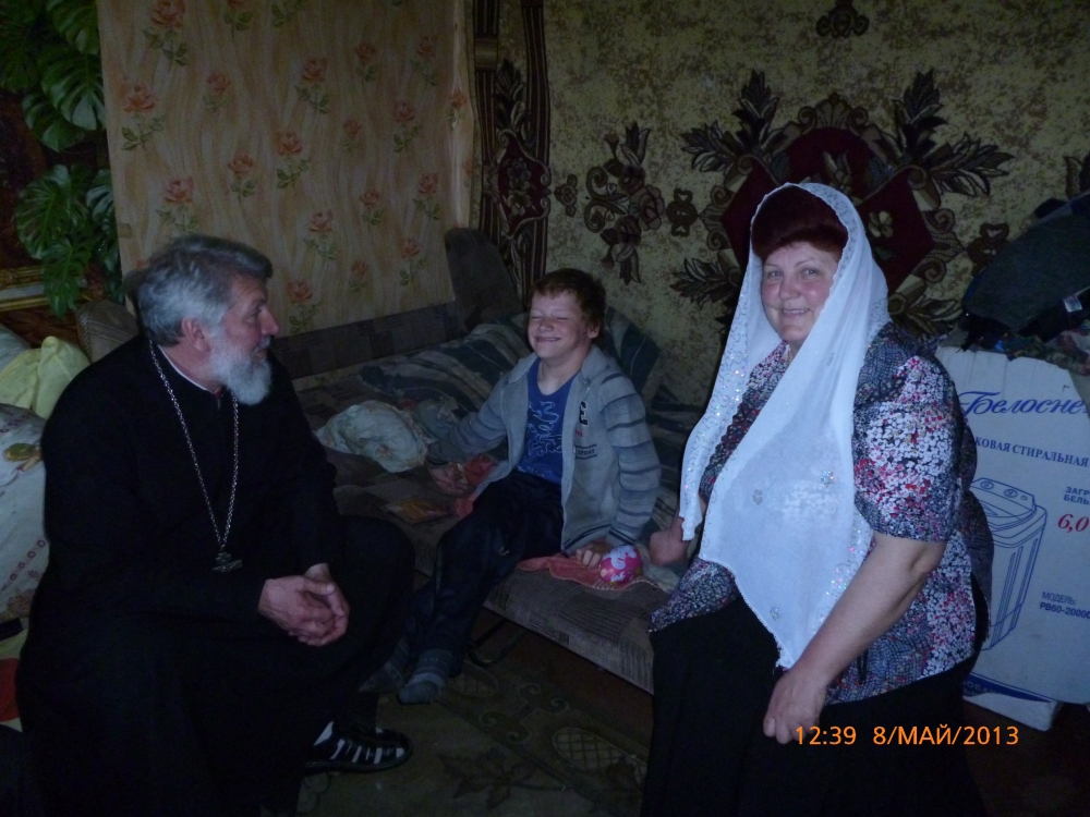 8 мая 2013 года, в Среду Светлой седмицы, в день воспоминания Апостола и евангелиста Марка и на кануне дня Великой Победы настоятель Свято-Богоявленского Храма отец Сергий с матушкой Евдокией посетили многодетные семьи и семьи, в которых есть дети-инвалиды.