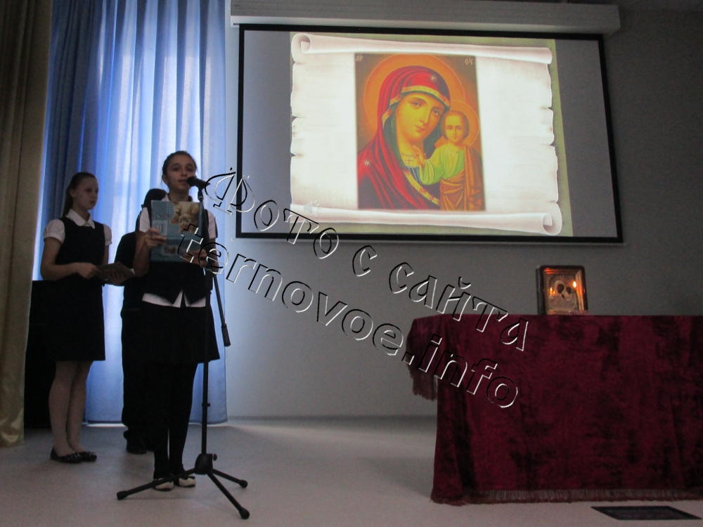 На встрече батюшка рассказал ученикам и их наставникам, что этот день осуществляется празднование в честь Казанской иконы Божией Матери.