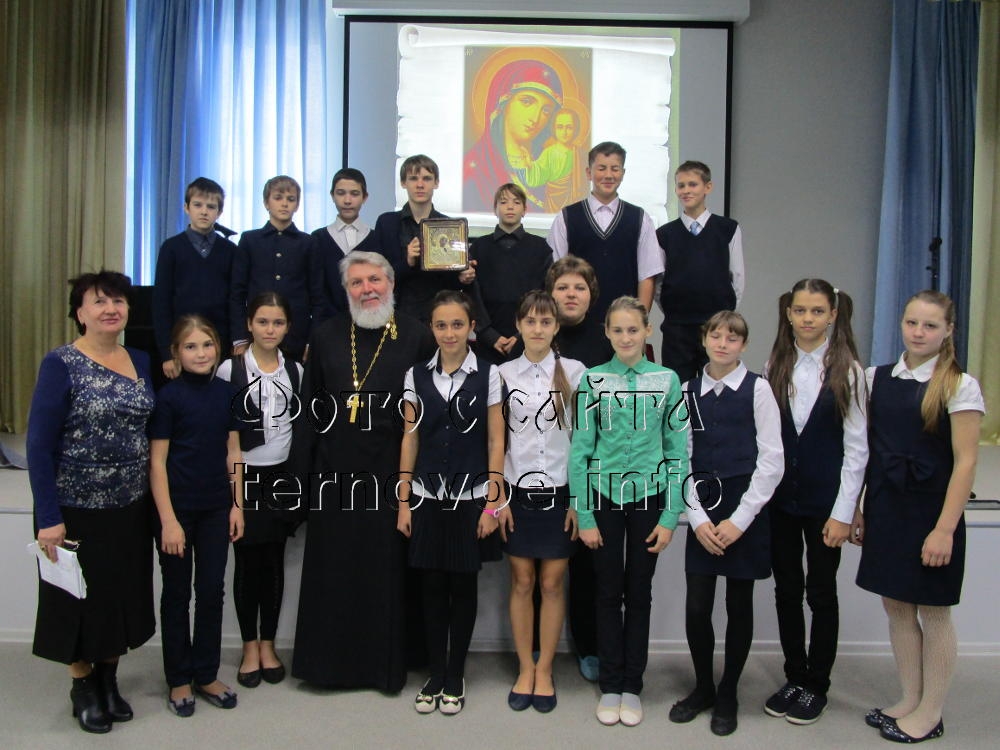 Накануне дня народного единства состоялась встреча настоятеля Свято-Богоявленского Храма иерея Сергия с учащимися и учителями МКОУ Губаревской СОШ.